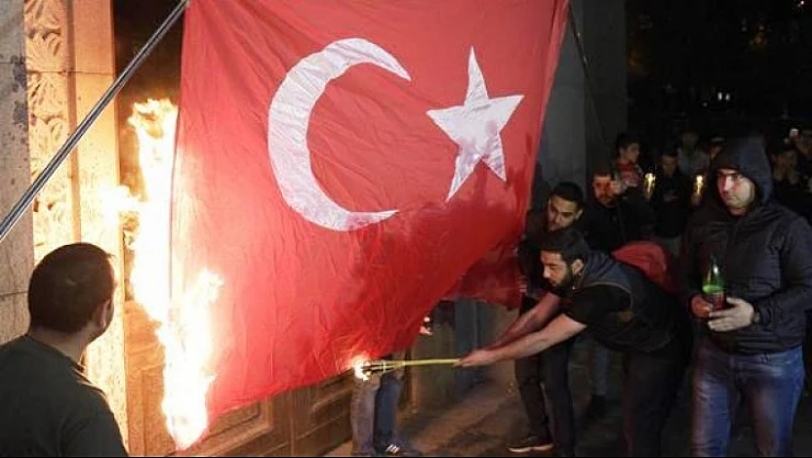 Erivan'da Alçak Görüntü! Türk Bayrağını Yaktılar.
