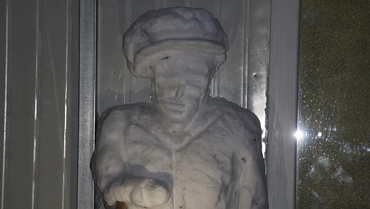 İbrahim Şahin Uyumaz , alışılmış kardan adam figürlerinin dışına çıkarak insan formunda bir kardan heykel çalışmasına imza attı.