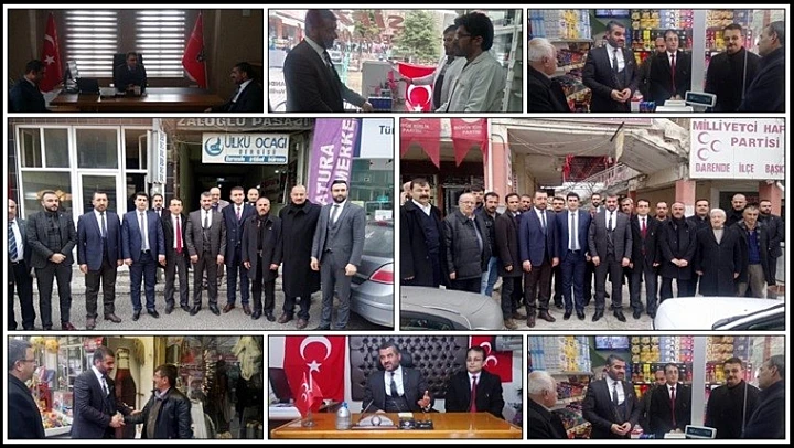 MHP İl Başkanı R.Bülent Avşar, Ülkü Ocakları İl Başkanı Emrah Yılan, MHP İl Başkan Yardımcıları Yücel Polat ve Burhan Kılıç ile birlikte, Darende Ülkü Ocakları, Darende İlçe Emniyet Müdürlüğü, Darende Kaymakamı Enver Hakan Zengince, Darende Belediye Başkanı Süleyman Eserdi, Askerlik Şubesi ve esnafları ziyaret ederek bir dizi incelemelerde bulundu.