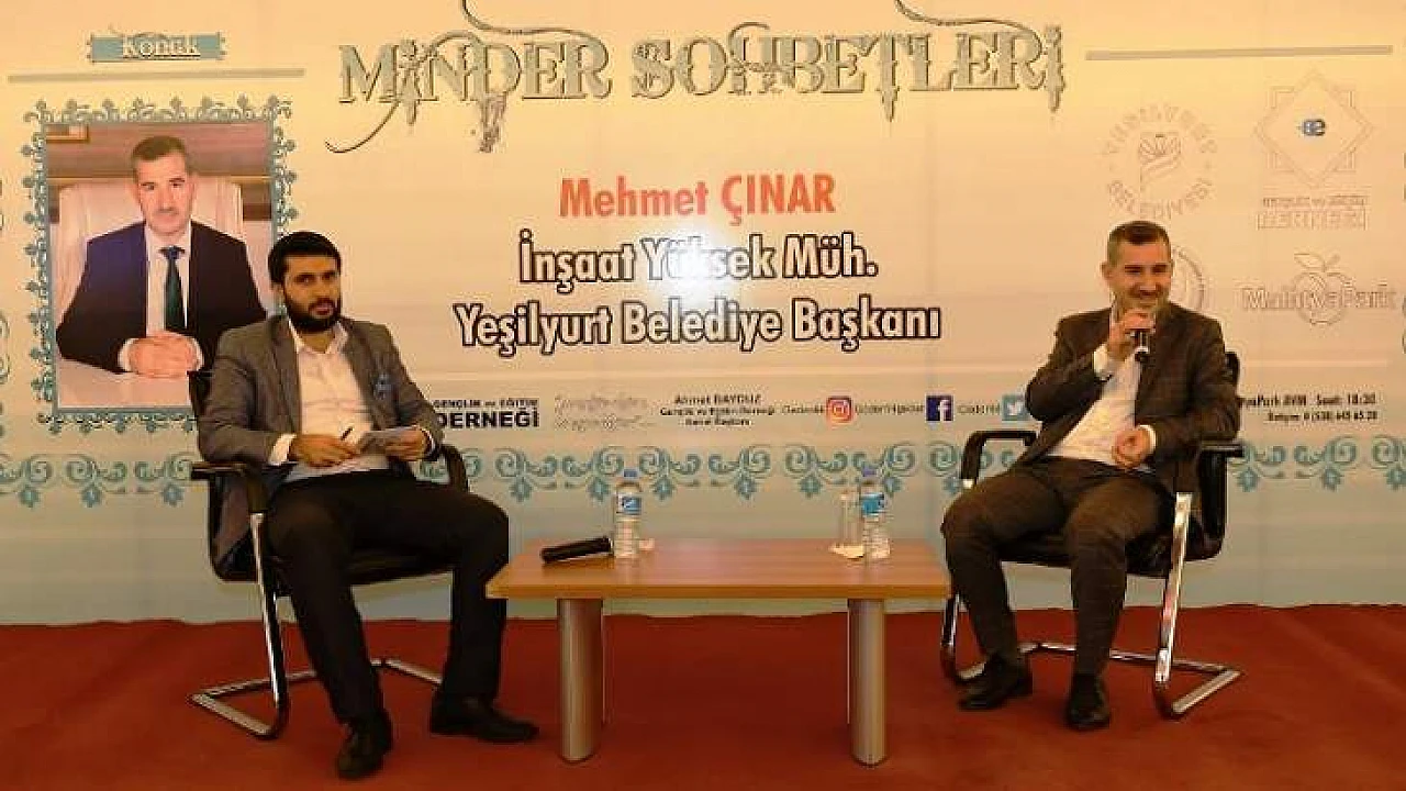 Gençlik ve Eğitim Derneği tarafından düzenlenen ‘Minder Sohbetleri’ programına katılan Yeşilyurt Belediye Başkanı Mehmet Çınar, Yeşilyurt’un çehresini değiştiren fiziki yatırımların yanı sıra birçok yerel yönetimin örnek aldığı sosyal projelerin amaç ve hedeflerini anlattı.
