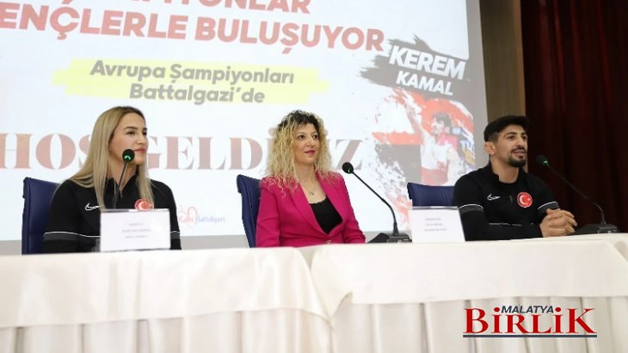 Battalgazi Belediyesi tarafından 'Şampiyonlar Gençlerle Buluşuyor' programı kapsamında Macaristan'da düzenlenen Avrupa Güreş Şampiyonası'nda madalya ile dönen milli güreşçi Kerem Kamal ve Buse Tosun Çavuşoğlu, spor hayatlarında başarıya giden yolu Battalgazi'deki gençlerle paylaştı.