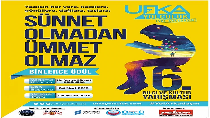 “Sünnet Olmadan Ümmet Olmaz” temasıyla 3 dil ve 11 ayrı kategoride düzenlenecek 6. Ufka Yolculuk Kültür Yarışması'nın kayıtları, 04 Mart 2018 tarihine kadar devam edecek.