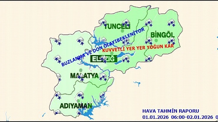 Meteoroloji yetkilileri, Malatya ve ilçeleri için kuvvetli kış koşullarına karşı uyarıda bulundu. Yapılan son değerlendirmelere göre, bölge genelinde havanın çok bulutlu ve aralıklı kar yağışlı geçmesi beklenirken, kar yağışlarının zaman zaman kuvvetli (10-20 cm), yüksek kesimlerde ise yer yer yoğun (20 cm ve üzeri) olacağı tahmin ediliyor.