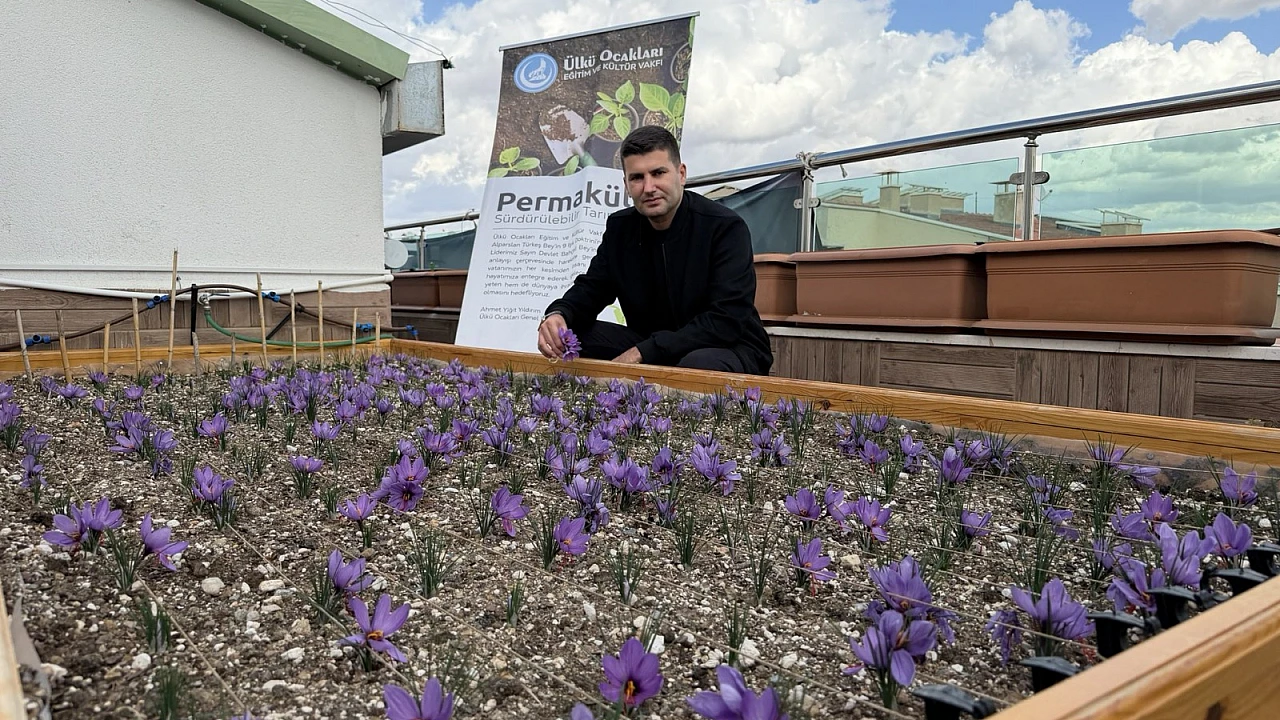 Ülkü Ocakları Genel Merkez binasının çatısında bu yıl renkli görüntüler oluştu. Ülkü Ocakları, bina terasında safran üretimi gerçekleştirdi. Türkiye’nin en değerli bitkilerinden biri olan safran, özel bakım ve doğal gübreleme yöntemleriyle yetiştirilerek hasat edildi.