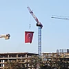 Operatör, vinç ucuna astığı dev Türk bayrağını akşam saatlerinde gökyüzünde dalgalandırarak kutlamaya renk kattı. Görüntüyü izleyen vatandaşlar, operatörün bu davranışına alkışlarla karşılık verdi.
